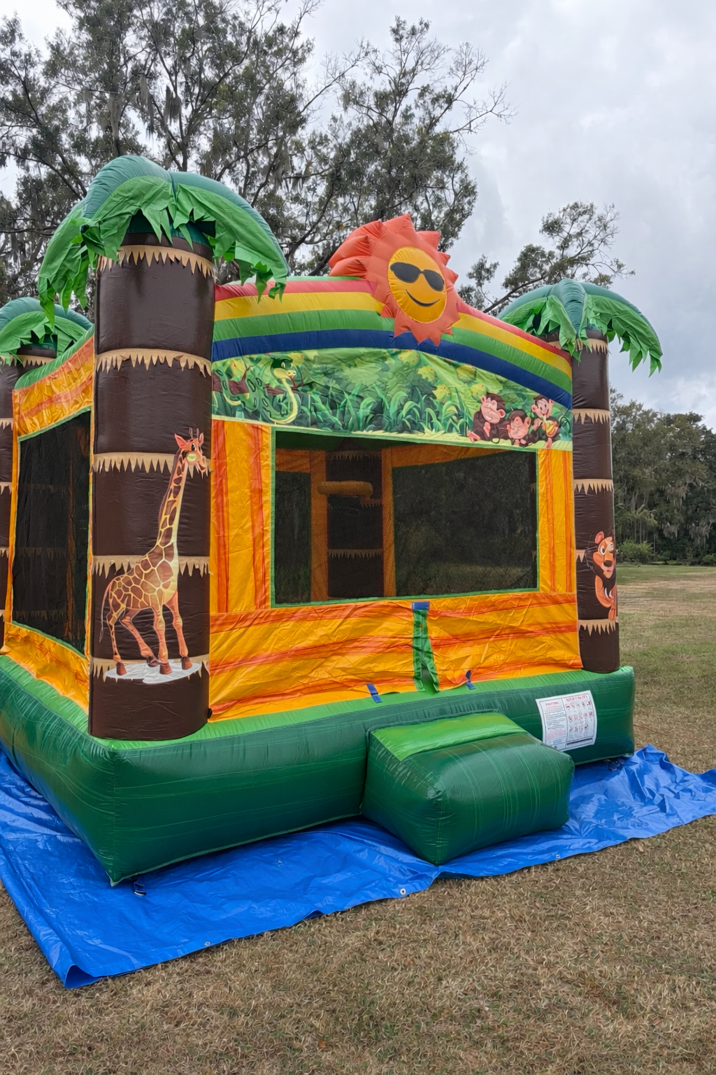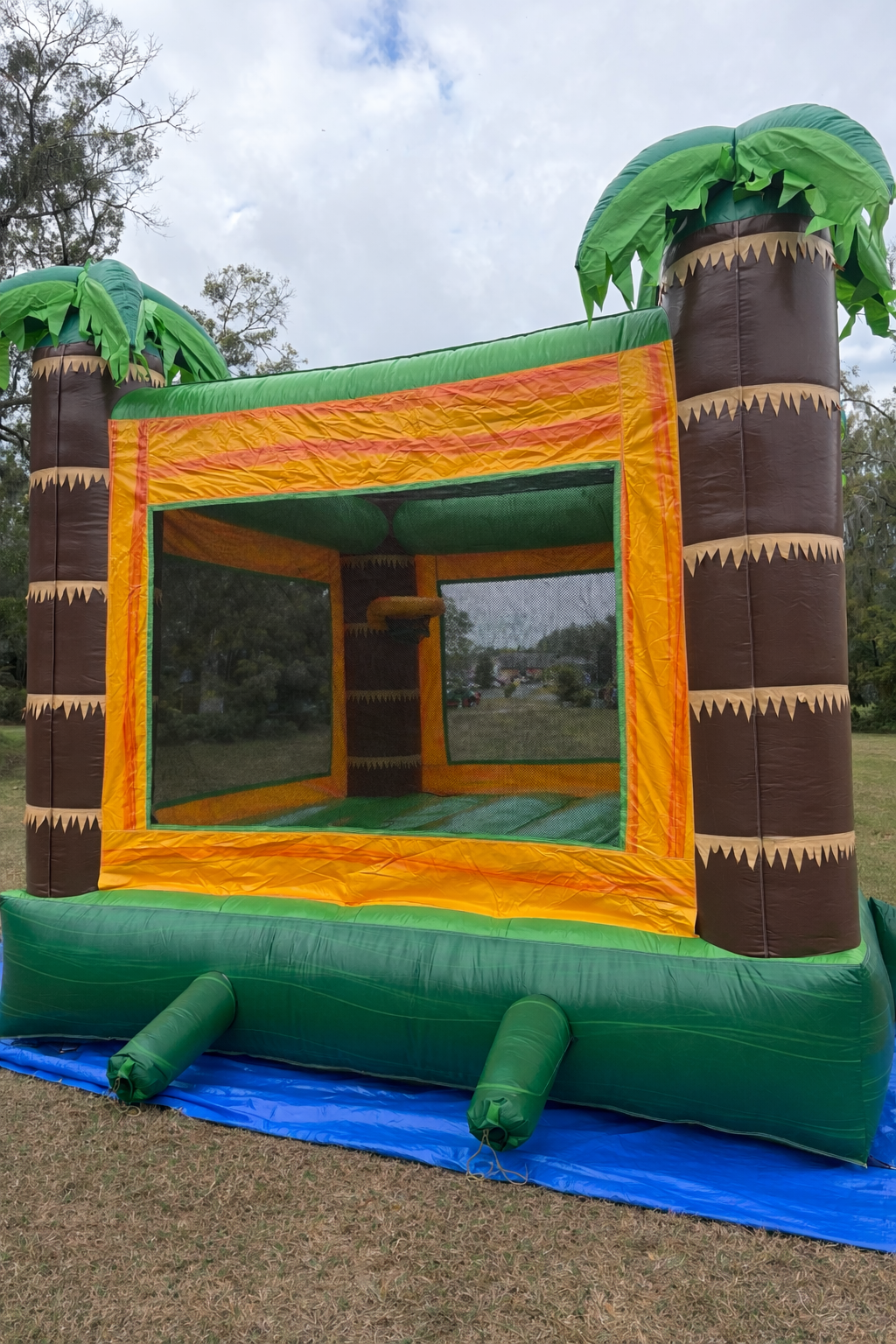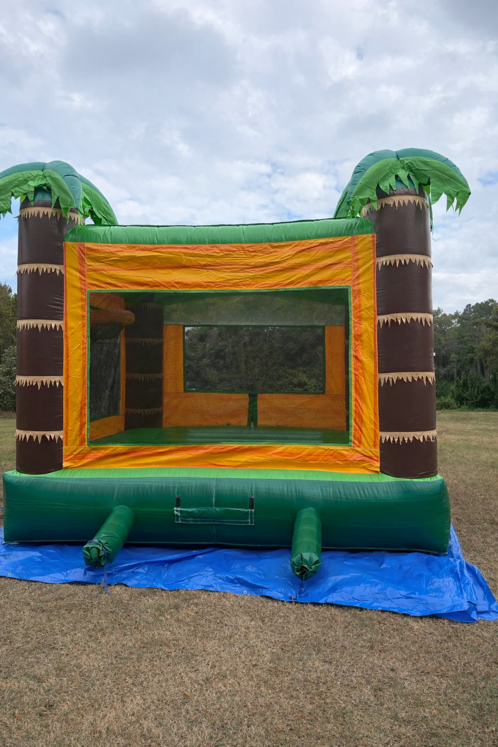 Bounce your cares away with our Tropical Bounce House. It has a safety step for easy entrance and exit for all ages. It also features special weave safety netting to protect your littles' fingers and so you can keep a close eye on anyone inside.